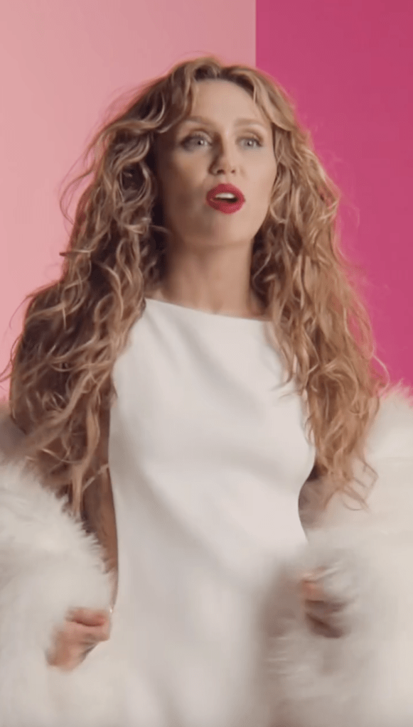 In this campaign video, Cyrus is seen dancing in a confident manner with her microphone in her hand. Her blonde hair is styled in a loose manner with rock-themed curls.