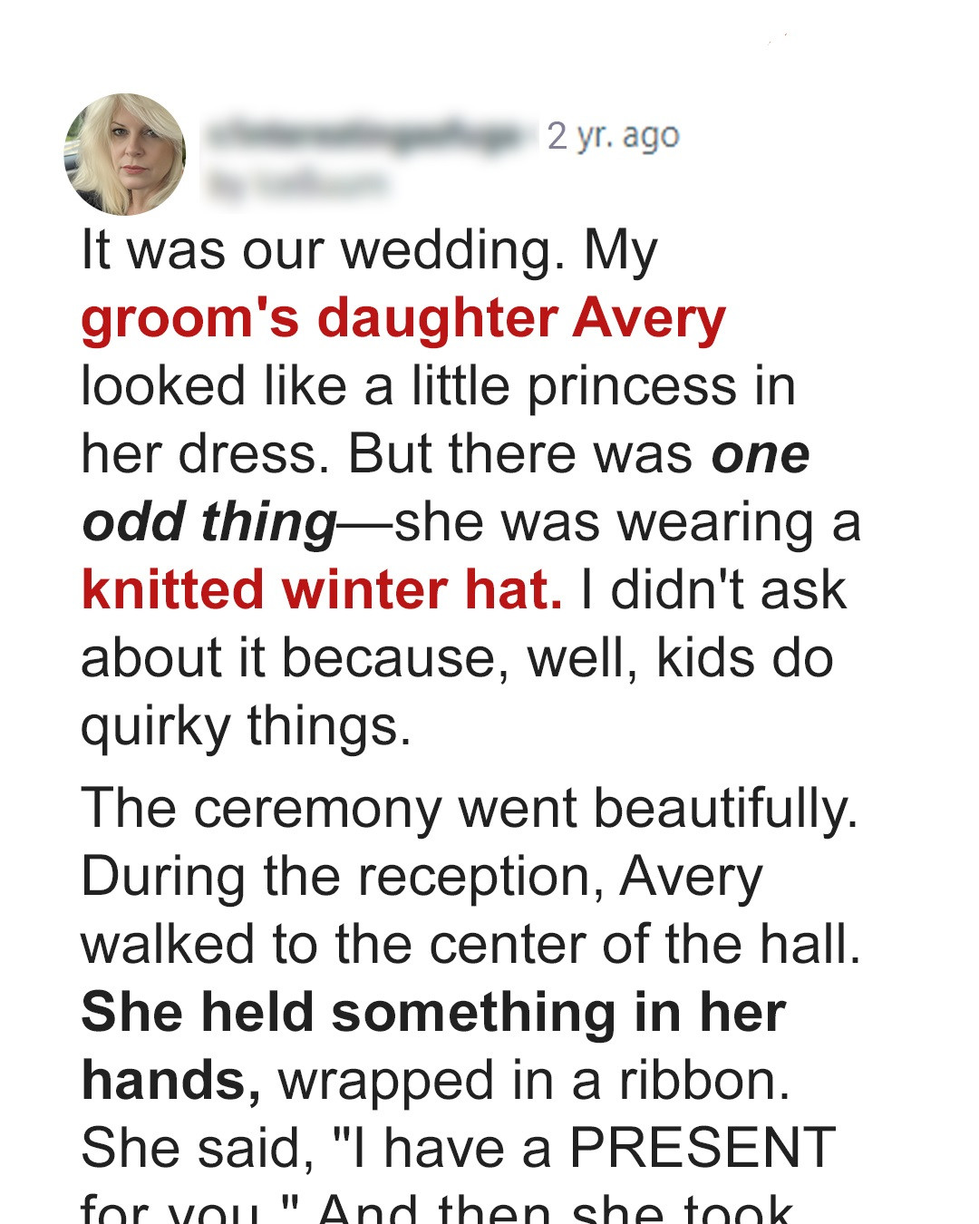 It was supposed to be the happiest day of my life—and it was. But it wasn’t the vows or celebrations that made it unforgettable. It was what Jake’s 8-year-old daughter, Avery, did at the reception that left everyone stunned.