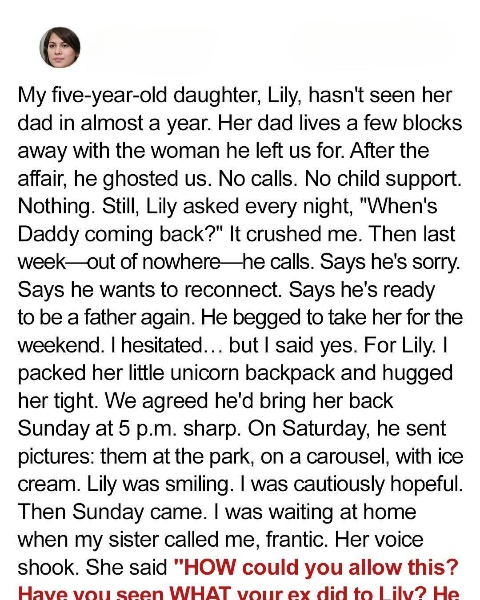 When my ex, Leo, reached out about spending time with our daughter Lily, a small flicker of hope stirred inside me—a hope I hadn’t allowed myself to feel in years. This was the man who had missed countless milestones: birthdays, school performances, doctor appointments. Every promise he had ever made to show up had been broken. Yet, suddenly, he wanted a weekend with her, claiming he wanted “to make things right.” A tiny part of me wondered if he could finally step into the role of father he had long neglected.