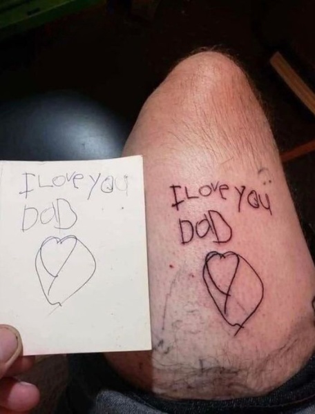 His daughter tragically passed away from cancer, leaving her family heartbroken. Before her death, she made a drawing with the words “I love you dad,” which he turned into a tattoo—a permanent symbol of their bond.