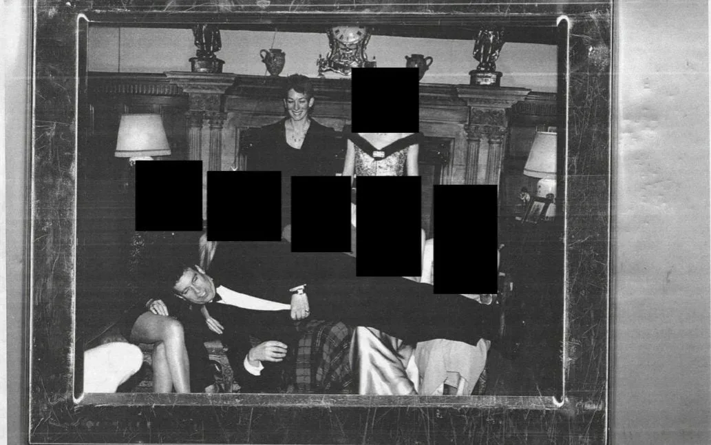 It also featured in its first trove of documents a picture of him lying in black tie across the laps of five women.