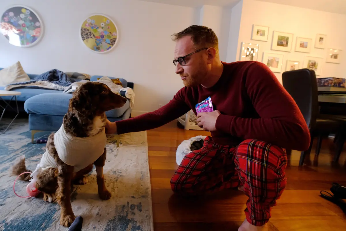 The 1-year-old Bernedoodle named Hazel was said to be with the owners, Orly Nhaissi and her young son, Elijah Sherinsky, as they strolled home from Breads Bakery at about 7 pm on Friday, when a man yelled out something.