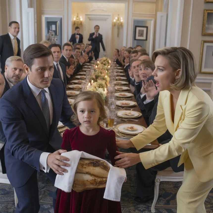 Sophie was on the floor, wearing a new velvet dress that had a small stain on the collar. Her face was streaked with tears. In her small hands was a turkey bone, picked clean, and she was gnawing on it like she was starving.