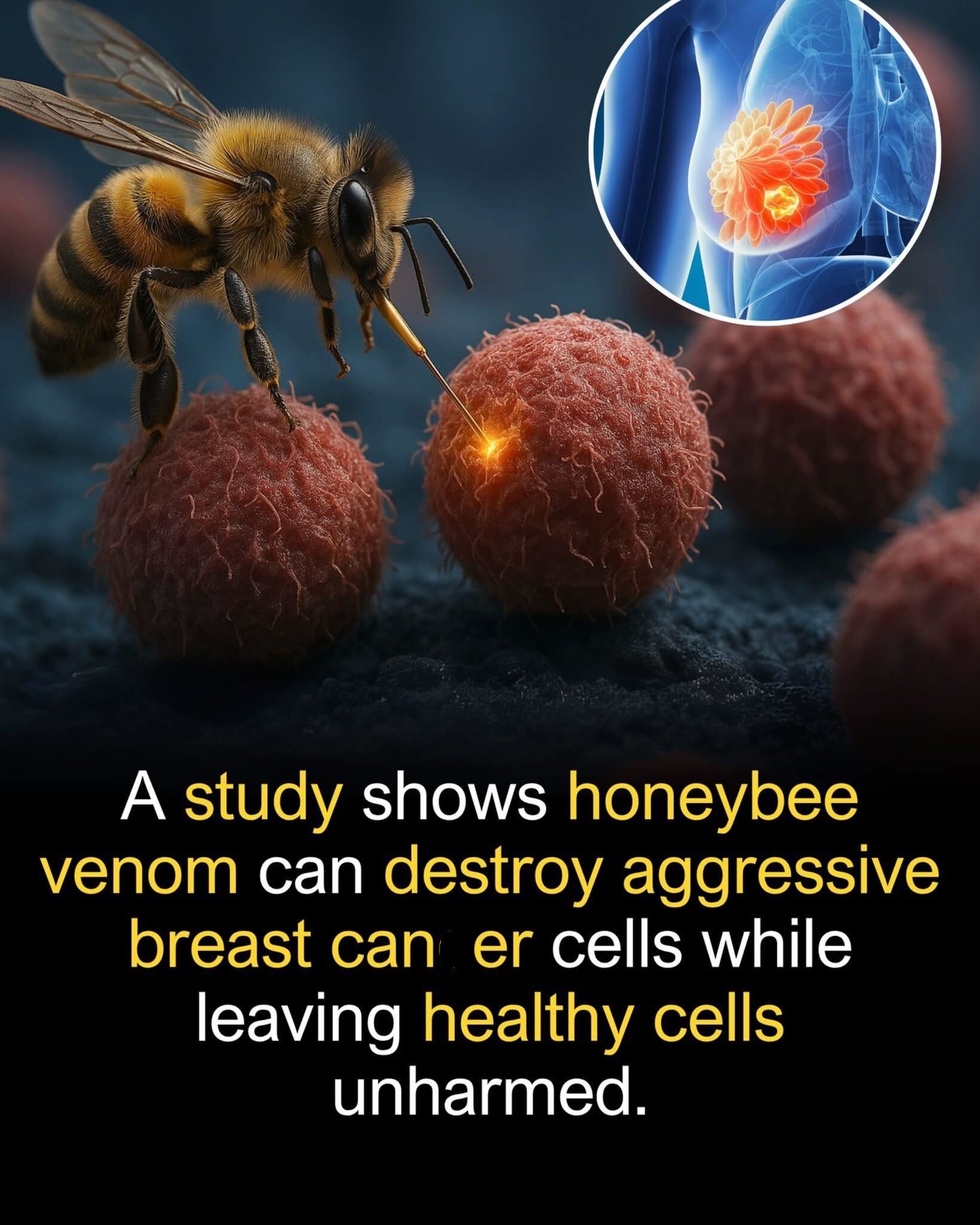 A bee’s sting might one day save your life. In a quiet laboratory tucked away in Australia, a team of researchers observed something that seemed almost impossible: the venom of honeybees, long feared for its pain and swelling, tearing through some of the most aggressive and deadly forms of breast cancer ever studied. Tumors that had resisted chemotherapy, radiation, and targeted drugs suddenly faltered. Healthy cells, astonishingly, remained largely untouched. For the doctors in the room, it was a moment of awe and disbelief. Could nature’s smallest but most potent weapon become the sharpest scalpel in medicine’s arsenal?