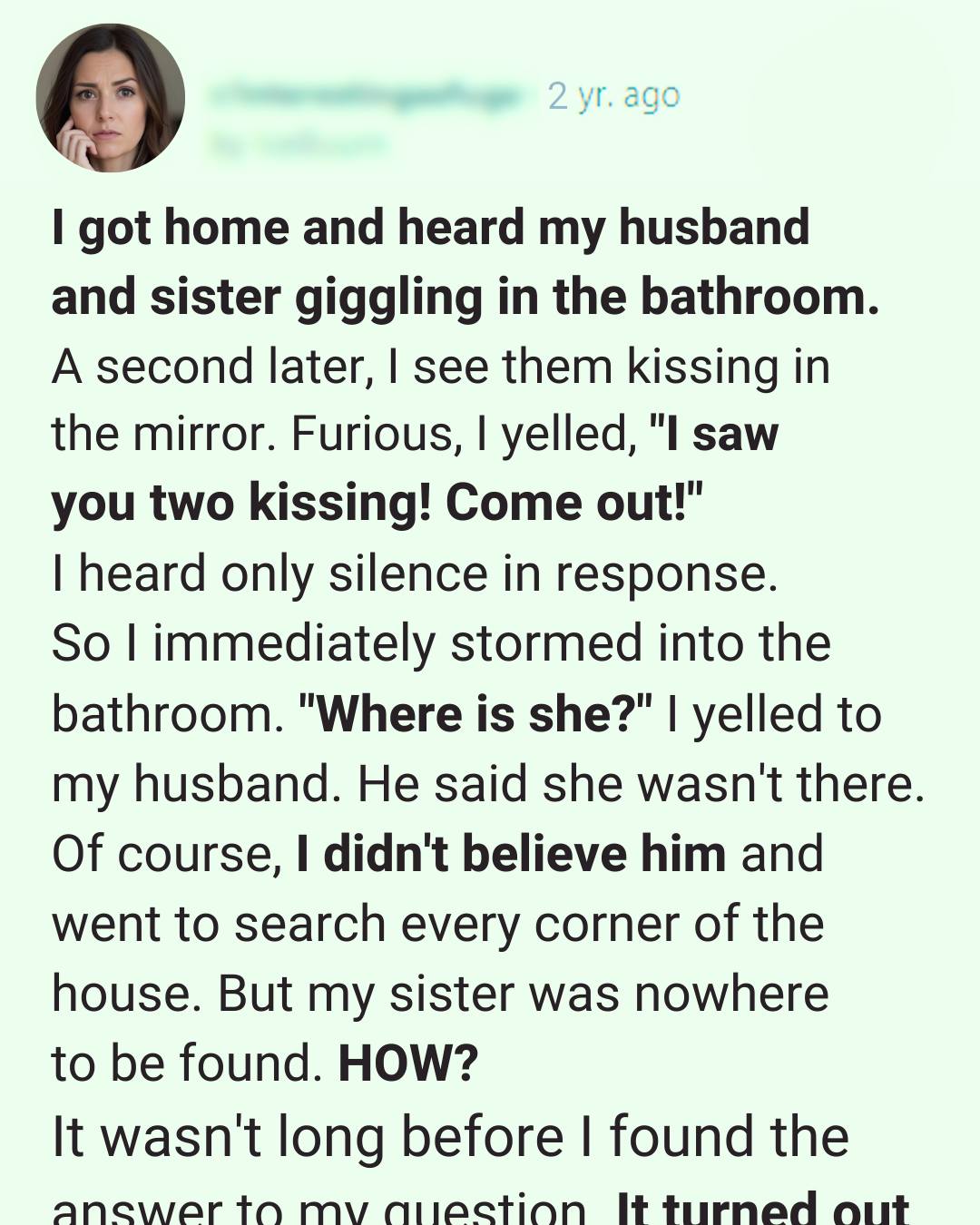 What I had seen when I came home wasn’t reality—it was a reflection of an earlier moment, distorted by the angle of the mirror and my own assumptions. My sister had already left hours ago. I felt sick.