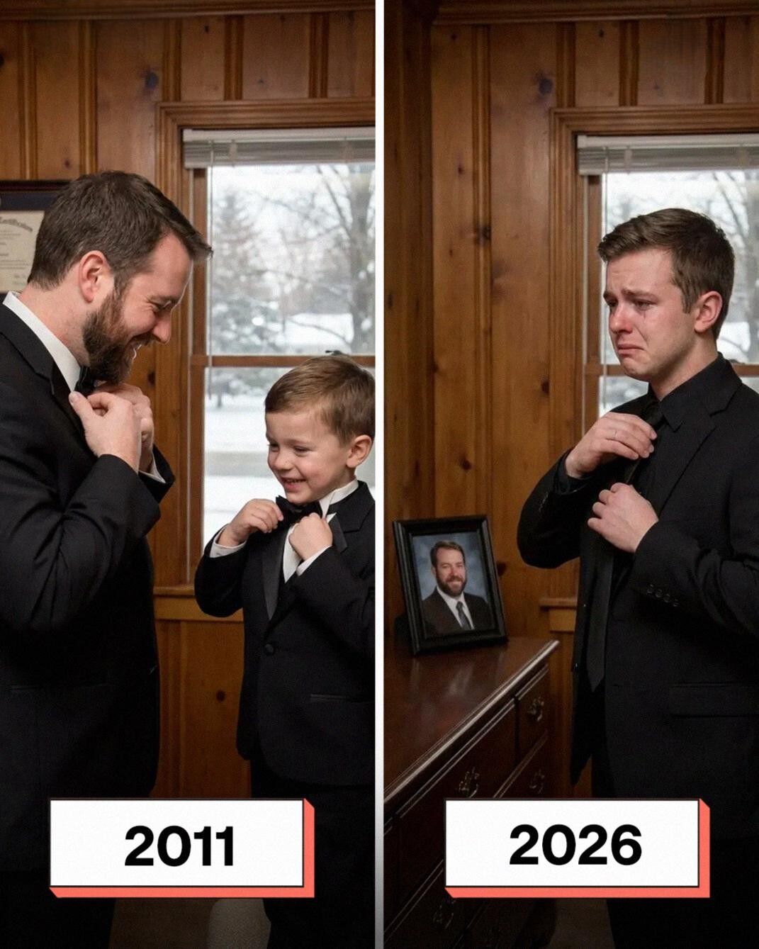The funeral came fast. Three days later, I stood in front of his casket, wearing his navy tie with thin gray stripes—the one he taught me to knot. I could hear his voice guiding me:
