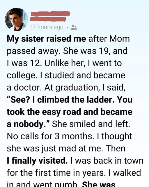 “There was no inheritance,” she admitted quietly. “Mom didn’t leave anything. I just wanted you to study freely.