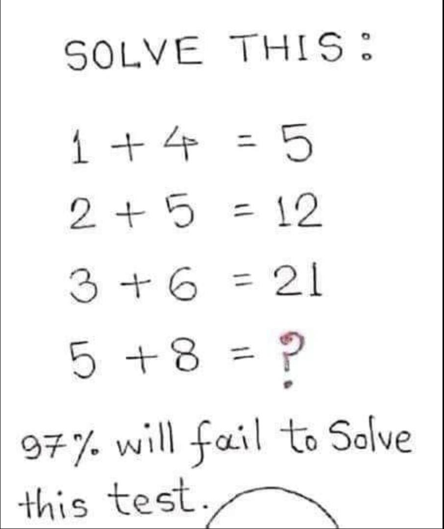 5 + 8 = 5 + 8 + (21) = 34