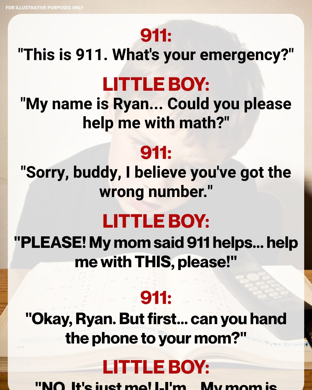 Not wanting to jump to conclusions, she decided not to take the boy’s pleas about his math homework too seriously. “Listen, son… What’s your name?” the operator asked. “My name is Ryan.”