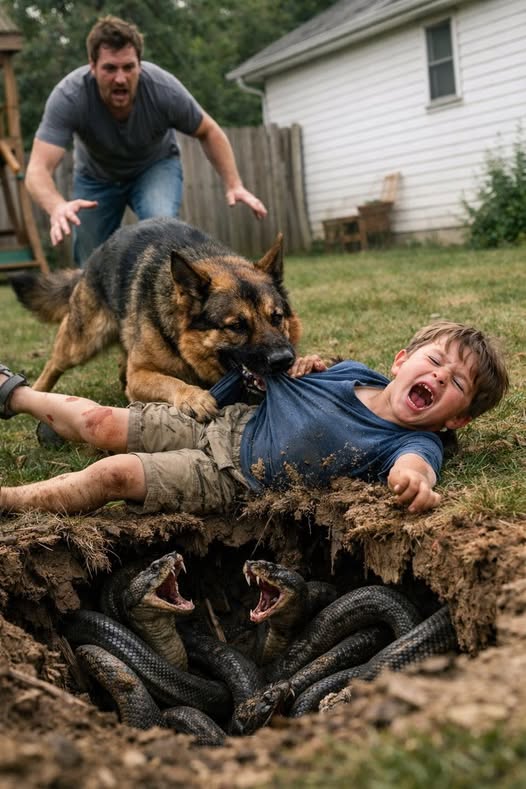 The snake struck. Titan moved with astonishing precision, sidestepping and circling, barking in controlled bursts, never leaving his post. He didn’t attack recklessly. He didn’t panic. Every motion was calculated to keep Caleb safe and to draw the creature’s attention. His paws struck the grass with force, digging in, every muscle coiled like a spring.
