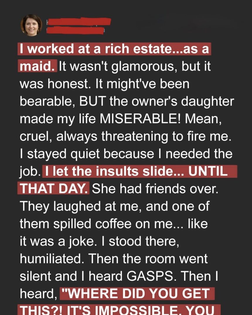 For months, I endured the sneers of my boss’s daughter, Tris, and her high-society friends. They treated me like dirt, simply because I was the maid. They never cared to know who I was or why I worked this job.