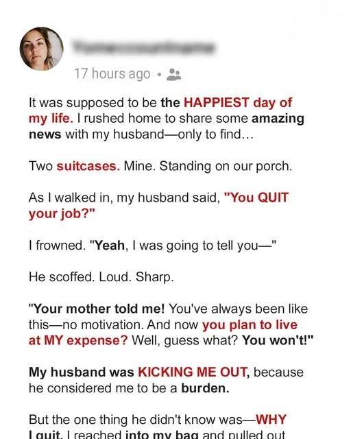 I turned and grabbed my suitcases, my heart hammering in my chest. “Wait—” His voice wavered, but I didn’t stop. I walked out that door and kept walking.