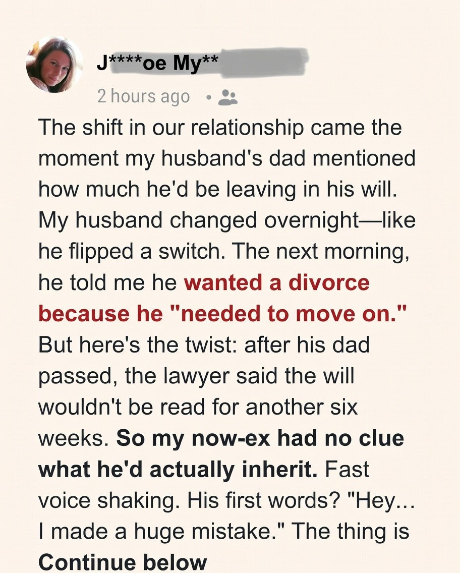 Wren was heartbroken but focused on caring for Quinn. Then, a month later, she received a surprising phone call from her late father-in-law’s lawyer.