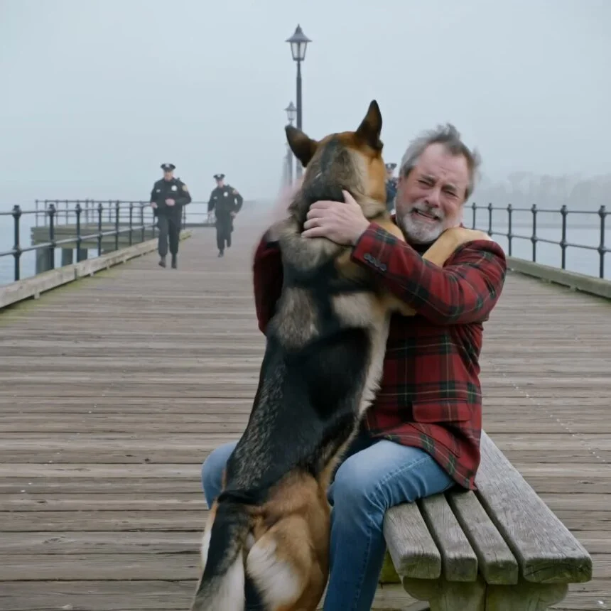 At the pier’s end, Rafael Moreno, an elderly man worn by time and service, sat on a wooden bench, staring into the gray, foggy sea. Beside him, a large German Shepherd leaned close, silent trust in every movement.