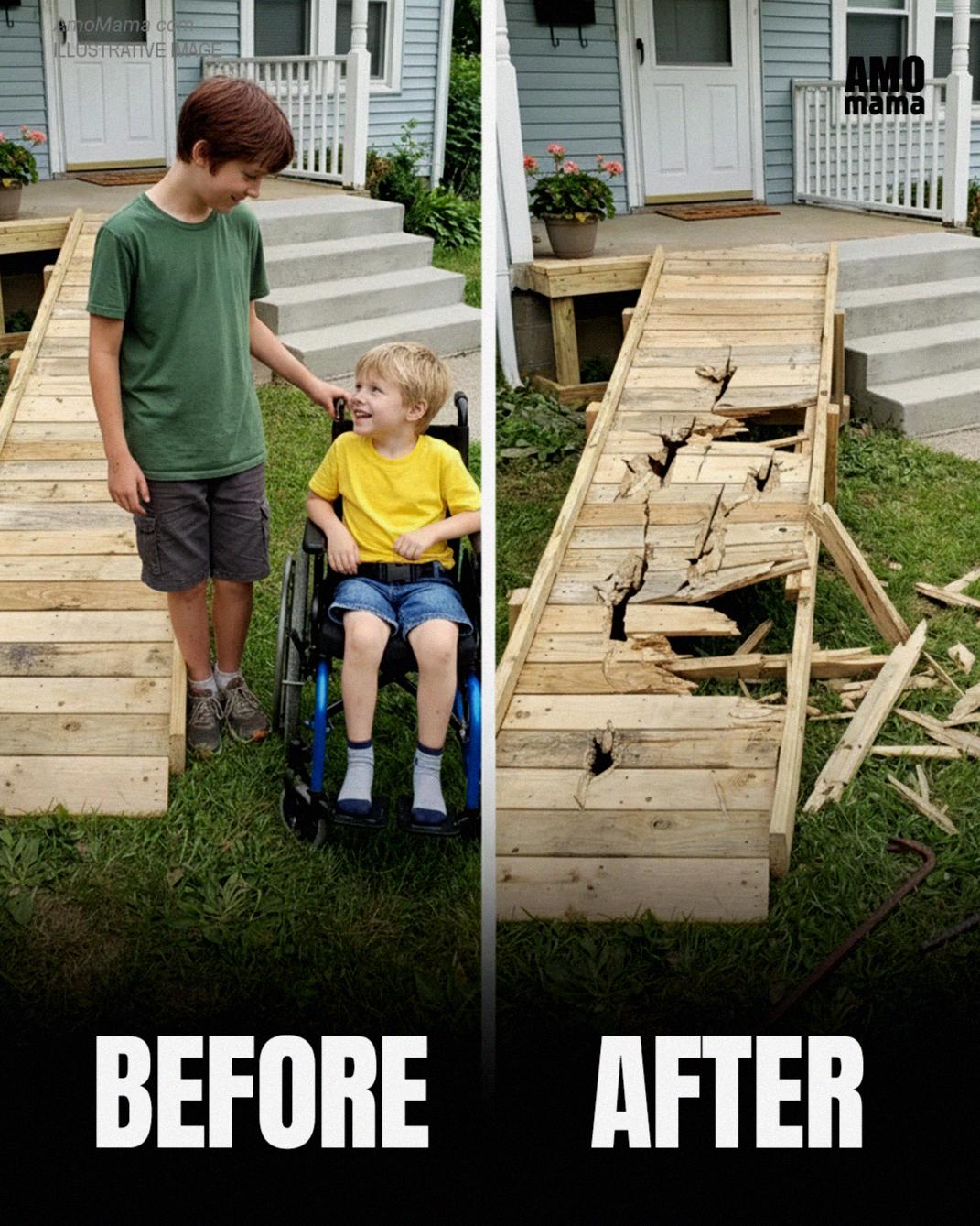 One afternoon, my son Ethan, 12, noticed something others didn’t: our neighbor Caleb, 9, never came down from his porch to play. Caleb, in a wheelchair, was trapped by four steep steps with no ramp.