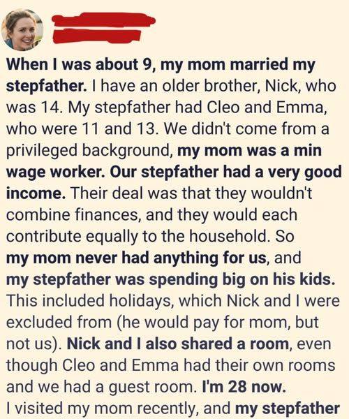 Growing up, my stepdad treated his daughters to trips and gifts while my brother and I stayed behind, pretending it didn’t hurt. We lived in the same house—but never felt like part of his family.