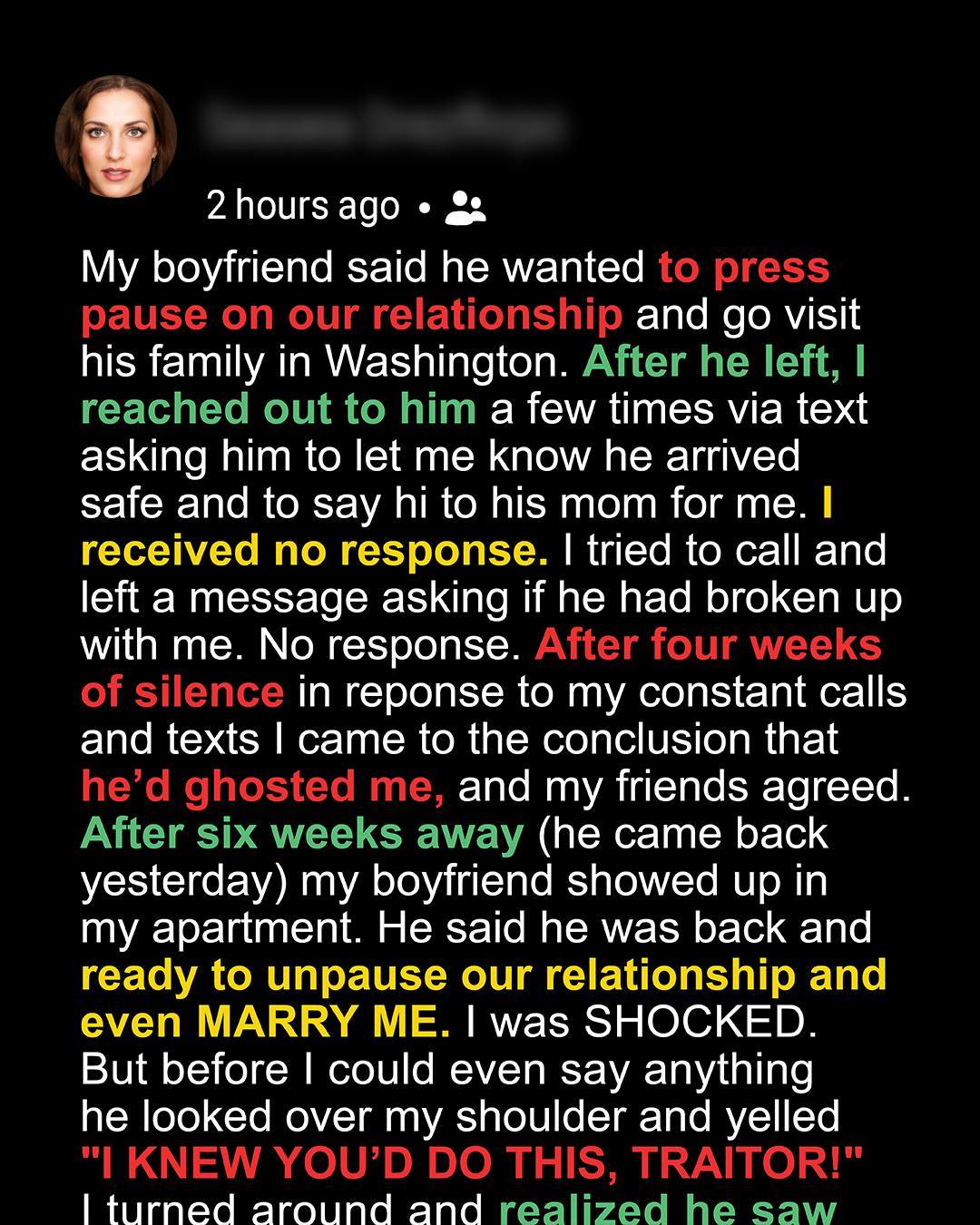I never believed in “pausing” a relationship — it’s either on or off. So when Jack said he needed space to “work on himself,” I let him go. Weeks passed without a single reply.