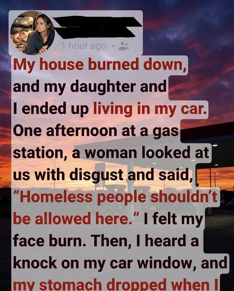 We drifted during the day, trying to survive on what little money I had. At a gas station, counting coins between food and fuel, I felt people staring. Then I heard someone say homeless people shouldn’t be allowed there.