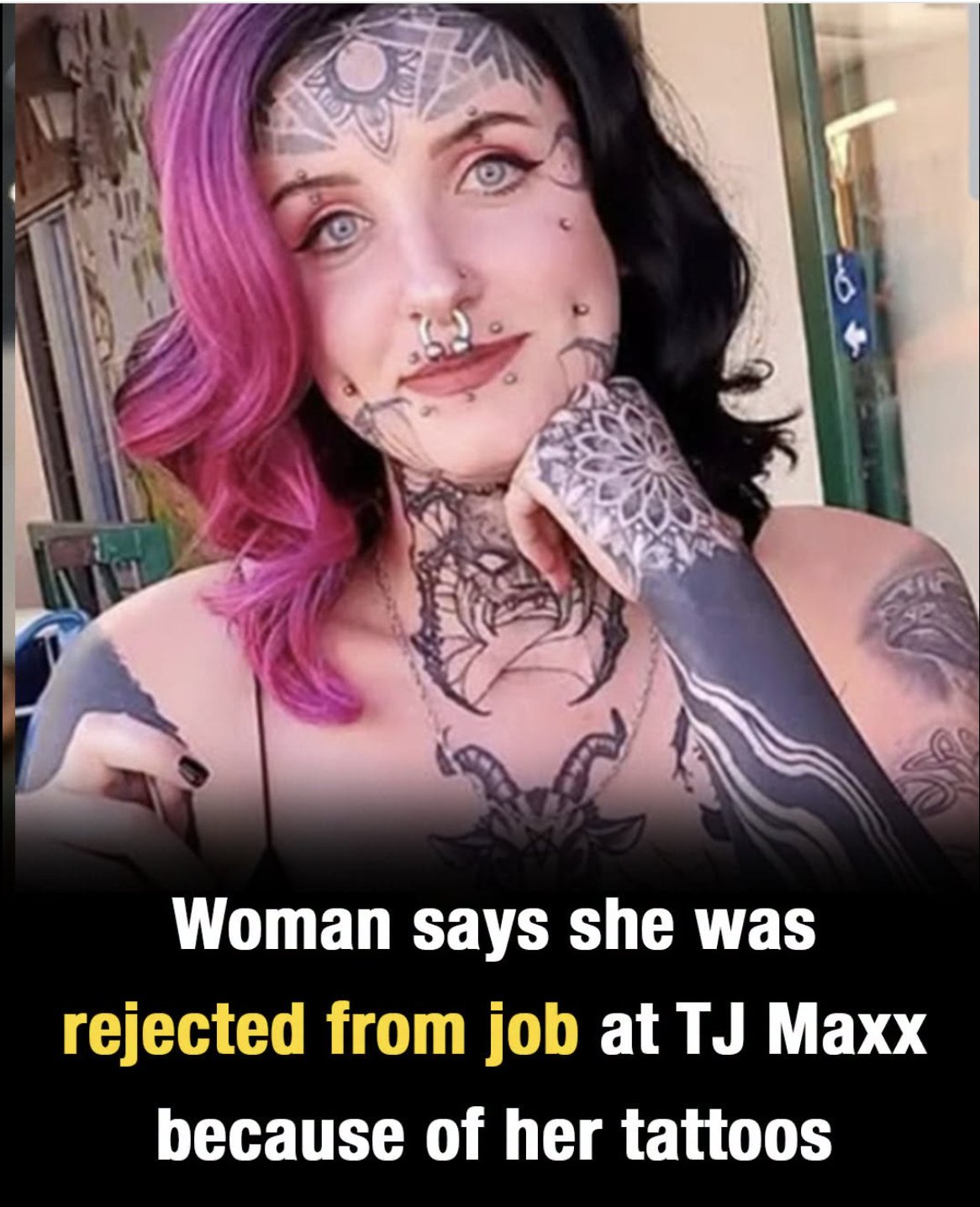 A heavily tattooed woman went viral after claiming she was rejected from a TJ Maxx retail job and questioning whether her appearance affected the decision.