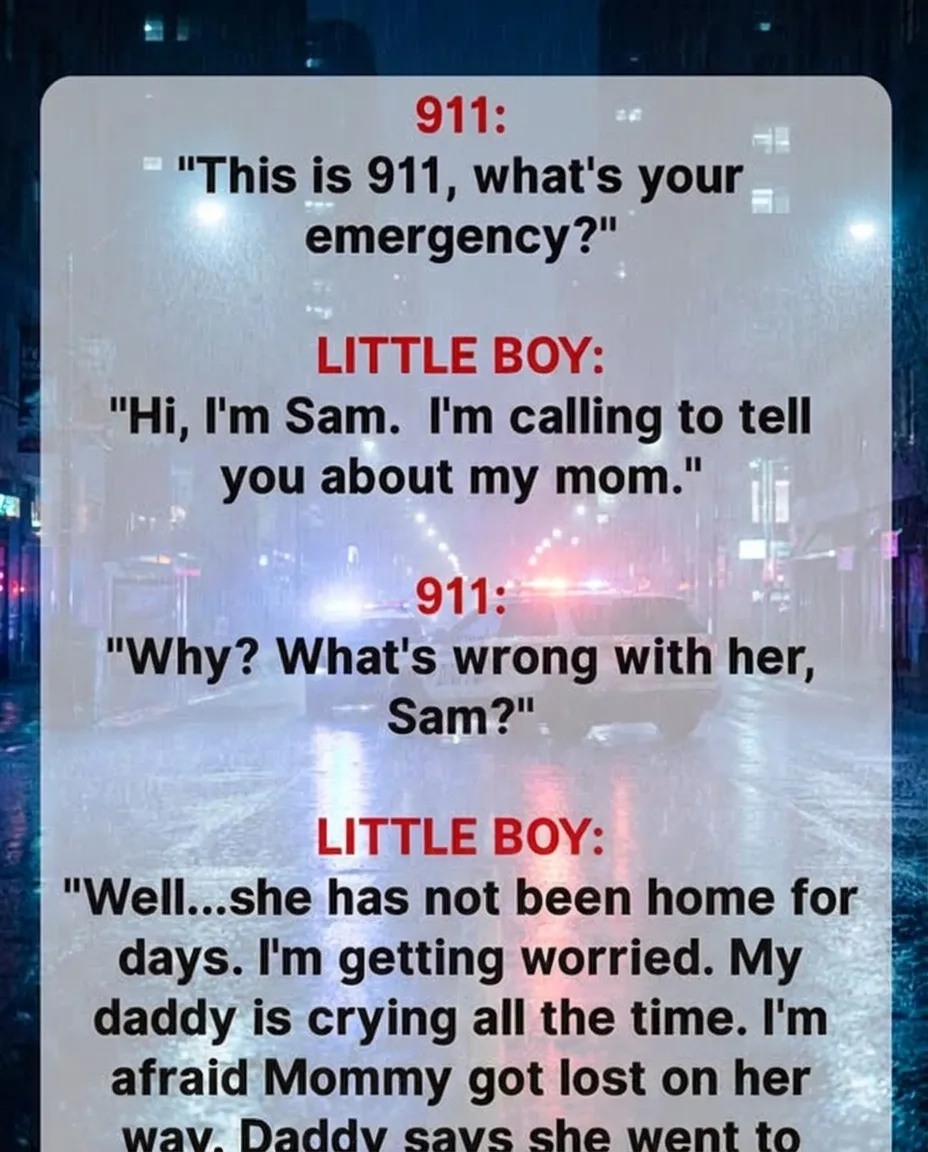 A 911 dispatcher answered a call from six-year-old Sam, who was crying because his mother had “gone to heaven” and never came back. Not understanding death, the boy feared she was lost and asked for help finding her.