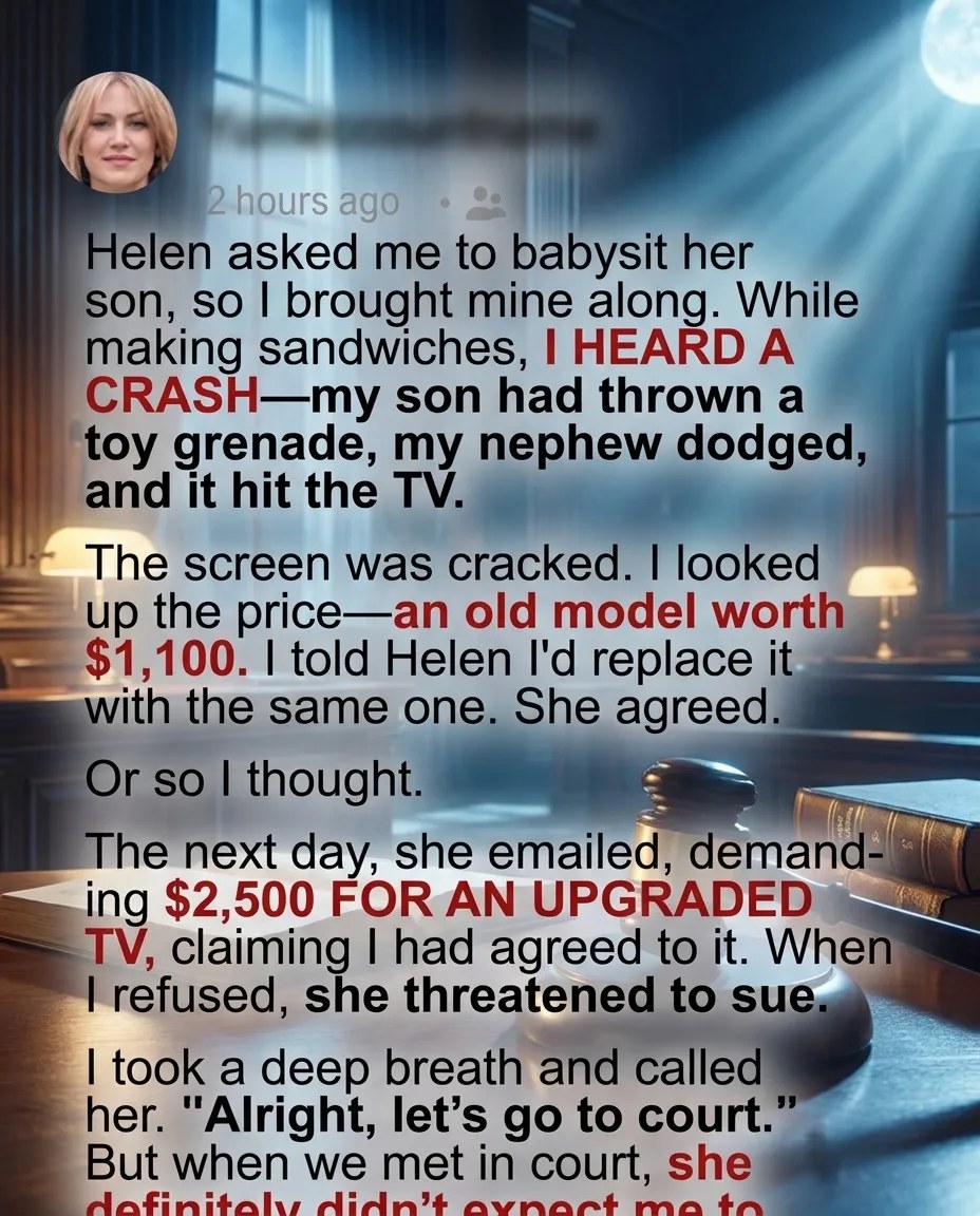 When my sister-in-law Dora asked me to babysit her son, I never expected it would turn into a legal battle over a broken TV.