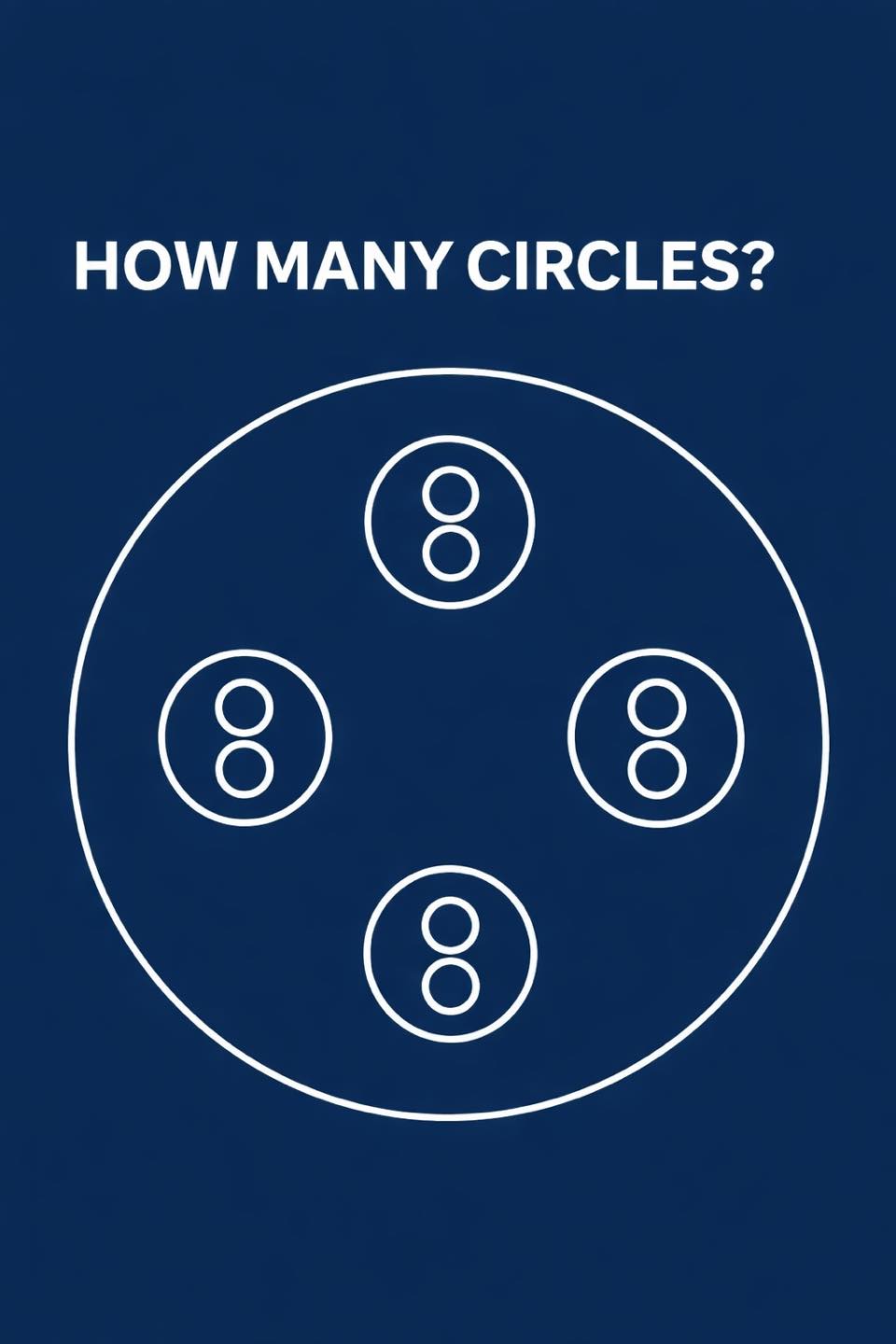 The trick is that each of the four inner circles contains two smaller circles, often mistaken as a single “8” shape. Many people miss this and undercount.