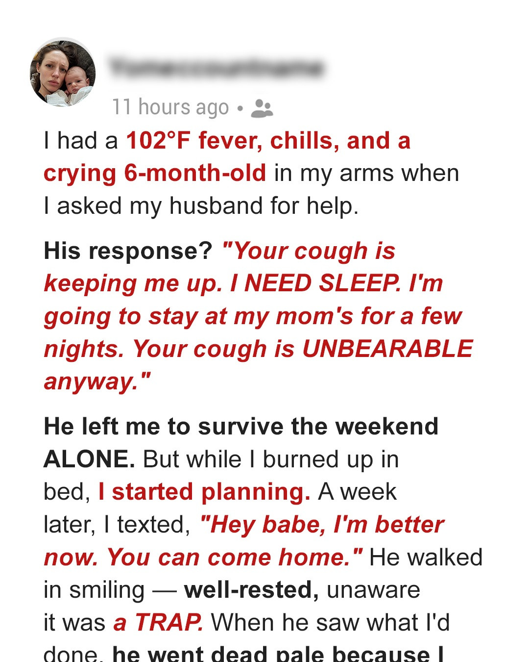 When I got sick, I saw a side of my husband I’d never seen—and didn’t like. He abandoned me and our newborn daughter because he didn’t want to step up. So I played along… and came out on top.